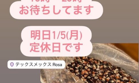 あけましておめでとうございます。本年もテックスメックス料理Rosaをよろしくお願いいたします。 1/4(日)正月休み最終日15時~23時の昼飲みからお待ちしております。正月料理に少し飽きたら、スパイスで身体を起こしに来て…