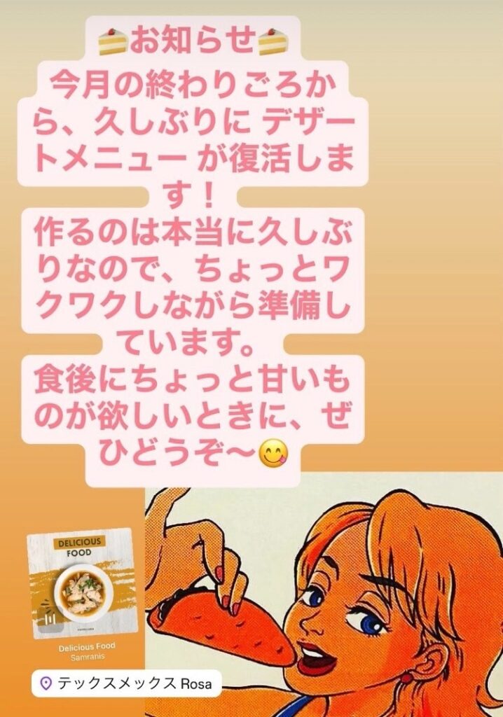 お知らせ 2025年9月9日 未分類 ツイート シェア はてブ 送る Pocket 今月の終わりごろから、久しぶりに デザートメニュー が復活します!作るのは本当に久しぶりなので、ちょっとワクワクしながら準備しています。食後にちょっと甘いものが欲しいときに、ぜひどうぞ〜😋 本日も17時オープンお待ちしてます