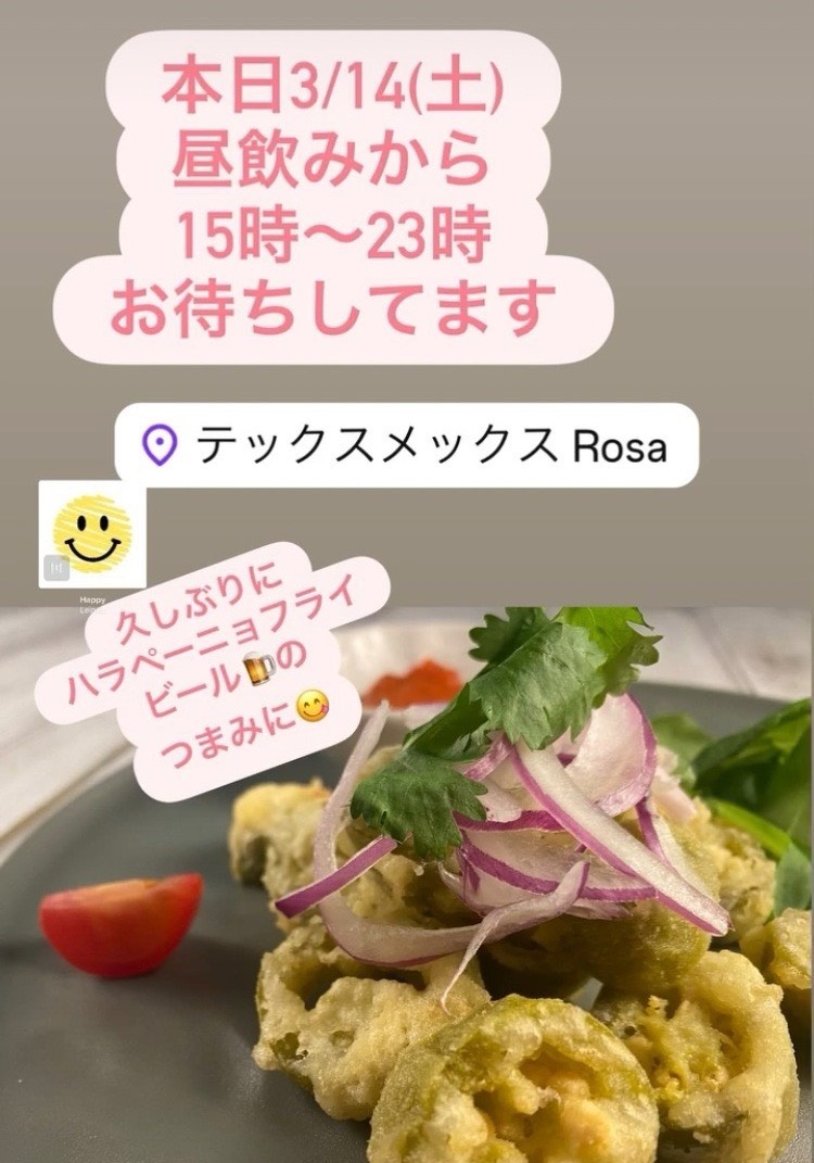 3/14(土) 2026年3月14日 未分類 ツイート シェア はてブ 送る Pocket 本日3/14(土)15時~23時昼飲みからお待ちしております。 久しぶりにハラペーニョフライビールのおつまみに
