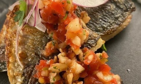 イカ、肝、トマトで煮込んだイカ墨たっぷりのタコス!トマトサルサをかけて召し上がれ😋 パスタでもできますのでお声かけください👍
