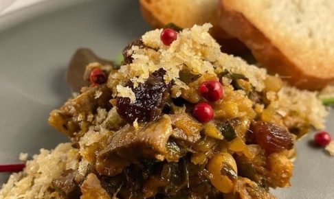イワシの煮込み松の実、レーズン、パン粉と共に イワシの旨味がギュッと詰まった煮込み。松の実の食感とレーズンの甘みほんのり香るフェンネル。 白ワインが進みます👍是非お試しあーれ😋