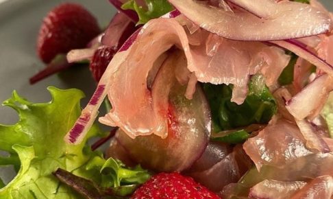 タコス🌮の前にさっぱりと!甘酸っぱいソースと生ハムの塩けいちごの甘みが相性良いです👍 タコスでもいけまーす🌮